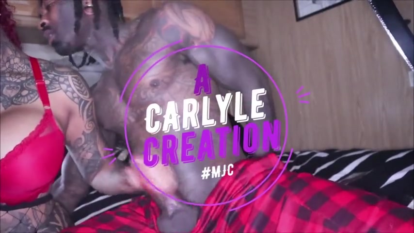 Inked ebony in fishnet pantyhose gets screwed by a strong dude