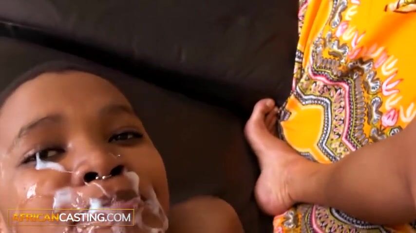 A sexy African bunny gives an intense blowjob to a foreign producer. She deepthroats his cock with skill and passion. This amateur MILF takes his cum eagerly.